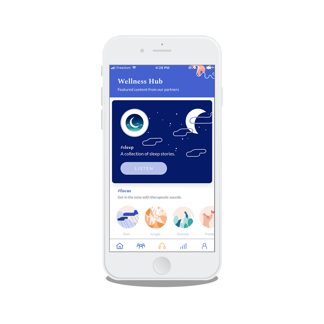 I was enlisted to adapt their existing brand styling to create iconography for their new Sounds feature. Each of the 10 sounds required a unique icon to serve as a UX button, as well as a matching design behind the timer screen.