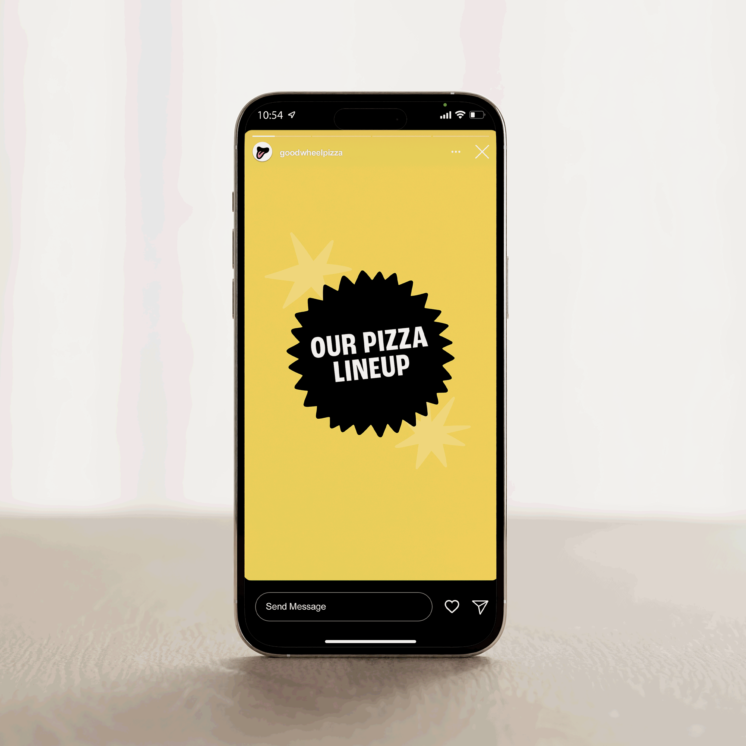 Good Wheel Pizza is on a mission to reinvent what frozen food can be. Pizza is fun, nostalgic, and forever tied to the joy of pizza parties—no matter your age. But as grown-ups with more discerning palates, why should frozen pizza brands feel so buttoned-up? At Good Wheel, the pizza is crafted with the precision of a fine chef, but the rest is unapologetically playful. The brand’s visual language draws from early cartoons, retro color palettes, and bold, shouty typography—serving up a slice of personality that’s as irresistible as the pizza itself.
